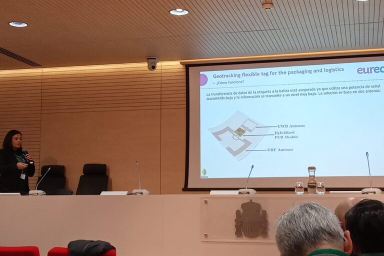 Eurecat presents the MADRAS geotracking flexible tag during a workshop on packaging and logistics