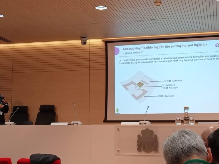 Eurecat presents the MADRAS geotracking flexible tag during a workshop on packaging and logistics